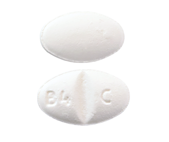 White, oval, biconvex, film-coated tablets w/ score line on one side, debossed w/ ‘B4’ left of score line, 'C' right of score line