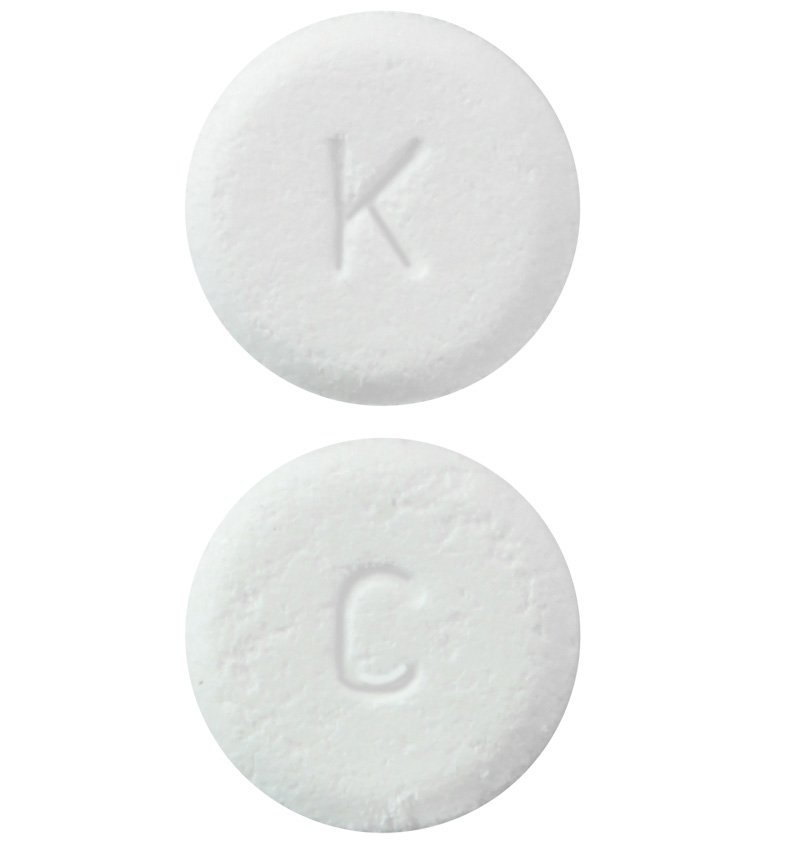 White, round, flat-faced, beveled-edged tablets, debossed with 'C' on one side and 'K' on the other side. Carton of 1 (1 x 3) unit-does tablets.